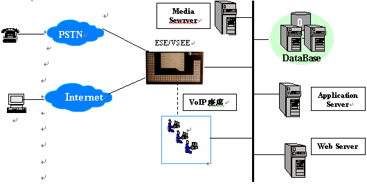 目前, ESE/VSE的主要應(yīng)用在呼叫中心平臺(tái),PHS增值業(yè)務(wù)平臺(tái),如短消息中心,預(yù)付費(fèi)業(yè)務(wù),及其他各種信息處理平臺(tái)。