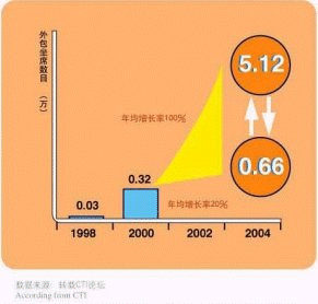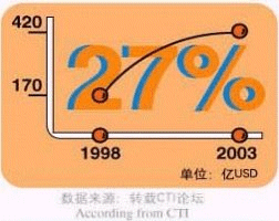 - 據(jù)CTI論壇轉(zhuǎn)引有關(guān)統(tǒng)計(jì)數(shù)字表明,全球呼叫中心外包市場(chǎng)1998年的產(chǎn)值為170億美元,2003年有望達(dá)到420億美元,并正以每年遞增27%的速度快增長;