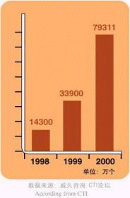 - 截至2000年底,我國總共擁有客戶服務(wù)中心座席數(shù)量7.9萬多個(gè)(不包括尋呼企業(yè)的座席數(shù)),市場(chǎng)總規(guī)模達(dá)到83.59億元。
