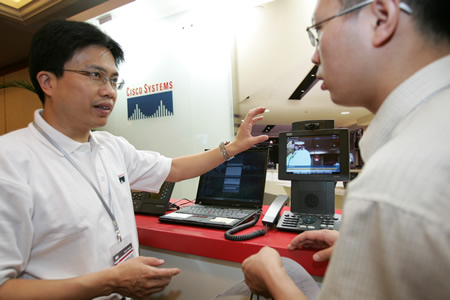 在思科統(tǒng)一通信里,另一項先進的技術(shù)與工具也將在不久的未來與公眾零距離接觸——思科的“遠(yuǎn)程呈現(xiàn)”(Telepresence)解決方案,這一增強型的語音和視頻會議解決方案融合了視頻、語音以及數(shù)據(jù)傳輸功能。憑借其出色、穩(wěn)定的影音實時傳播效果,讓會議之中的其他參與者就像電影《星球大戰(zhàn)》中一樣,以真實的影像出現(xiàn)在通話者的面前,帶給用戶更具現(xiàn)場感的“面對面”交流體驗。