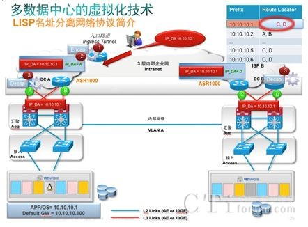 今天我們討論的主要是在虛擬化環(huán)境中如何通過網(wǎng)絡(luò)協(xié)議精確定位虛機的具體位置,LISP 解決方案解決了虛機移動領(lǐng)域的一大難題,該功能允許一個子網(wǎng)的虛擬機成員,當虛擬移動到網(wǎng)絡(luò)任何地方,同時保留其IP地址不變,無需在主機上的任何變化,但網(wǎng)絡(luò)訪問可以定位其精確位置并實現(xiàn)最優(yōu)路由,同時保持網(wǎng)絡(luò)的穩(wěn)定性和高可擴展性。