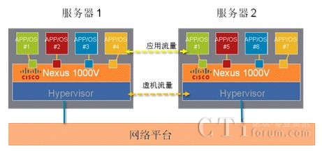在多中心互聯(lián)的虛擬化環(huán)境下,OTV的實現(xiàn)多個數(shù)據(jù)中心的二層連接,其實也就是在多個地點的延伸同一個的IP子網(wǎng)。除了服務(wù)器集群需要二層連接,虛擬化環(huán)境需要在虛擬機與虛擬機的流動性,如VMware vMotion或一個簡單的物理服務(wù)器在數(shù)據(jù)中心間的移動,都需要數(shù)據(jù)中心間支持二層連接。如圖3所示。