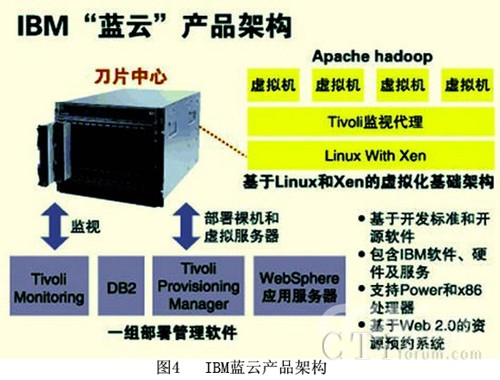 在IBM的云計算白皮書上,我們可以看到如下的藍云計算平臺配置情況。