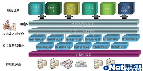 企業(yè)云通過采用硬件設(shè)備虛擬化、軟件版本標(biāo)準(zhǔn)化、系統(tǒng)管理自動化和服務(wù)流程一體化等手段,把傳統(tǒng)的數(shù)據(jù)中心建設(shè)成為一個以服務(wù)為中心的運(yùn)行平臺,資源的使用方式從專有獨(dú)占方式轉(zhuǎn)變成完全共享方式,運(yùn)行環(huán)境可以自動部署和調(diào)整資源分配,實(shí)現(xiàn)資源隨需掌控,從而幫助客戶建立一個基于業(yè)務(wù)的資源共享、服務(wù)集中和自動化的開放數(shù)據(jù)中心。