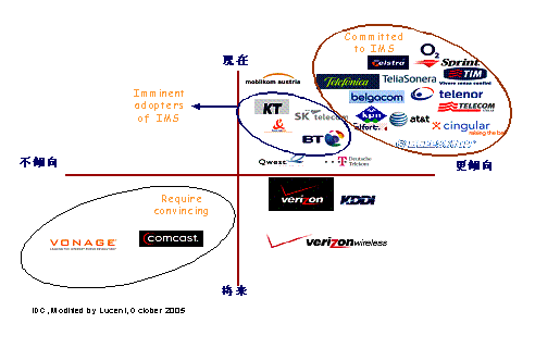 Yankee集團(tuán)的IMS調(diào)查,朗訊在IMS領(lǐng)域有著絕對(duì)的領(lǐng)先優(yōu)勢(shì),在技術(shù)和試驗(yàn)網(wǎng)上都優(yōu)越于競(jìng)爭(zhēng)對(duì)手。