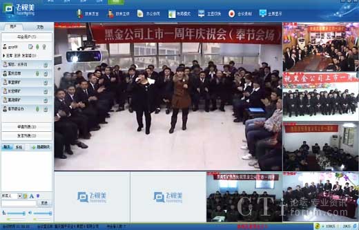 首先,飛視美為總部及5個(gè)辦事處分別安裝了飛視美視頻會(huì)議軟件,將慶典場(chǎng)地劃分為1個(gè)主會(huì)場(chǎng)和5個(gè)分會(huì)場(chǎng),總部與分支機(jī)構(gòu)的員工都在當(dāng)?shù)貐⒓討c典,通過(guò)飛視美進(jìn)行在線演講與總結(jié)、相互問(wèn)候、相互祝福、表演節(jié)目、進(jìn)行互動(dòng)游戲等,這是一種“高科技互動(dòng)”。其次,為了達(dá)到更好的視頻溝通效果,飛視美為黑金實(shí)業(yè)量身定制了一套硬件設(shè)備方案。根據(jù)各會(huì)場(chǎng)的面積、參與人數(shù)等情況,提供了一整套硬件參考:包括攝像設(shè)備、音響設(shè)備、功效設(shè)備等,并派出技術(shù)團(tuán)隊(duì)專門赴重慶為客戶進(jìn)行設(shè)備搭建和調(diào)試,保障了此次慶典的最佳效果。