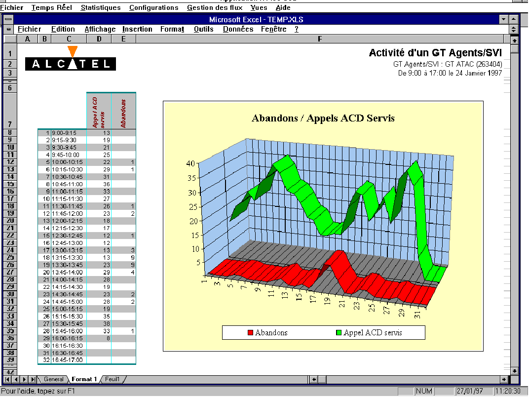 除了實(shí)時(shí)統(tǒng)計(jì),A4400 CCS 用"Excel" 以擴(kuò)展式清單和圖表形式提供詳細(xì)統(tǒng)計(jì)信息。而且,詳細(xì)的通話呼叫水平清單能下載到您的數(shù)據(jù)庫(以太網(wǎng)TCP/IP 協(xié)議的FTP)根據(jù)用戶的需要可作后期處理。