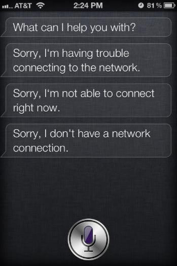 北京時間11月4日上午消息,據(jù)美國科技博客網(wǎng)站VentureBeat報道,從美國西部時間上午11點開始Siri已經(jīng)無法正常使用,它是蘋果為iPhone 4S推出的一款最新語音功能服務(wù)。該服務(wù)不能使用令許多iPhone 4S用戶煩惱不已。