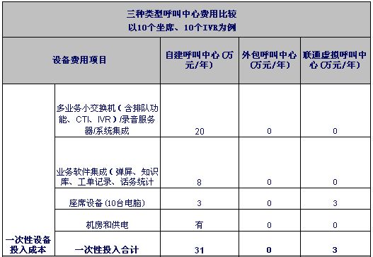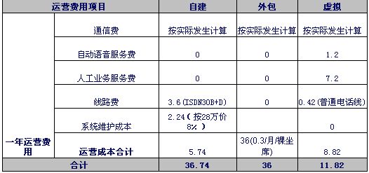 注1:自建和外包呼叫中心按目前市場平均價(jià)計(jì)算。虛擬呼叫中心按聯(lián)通標(biāo)準(zhǔn)資費(fèi)計(jì)算。外包坐席按裸坐席計(jì)算。