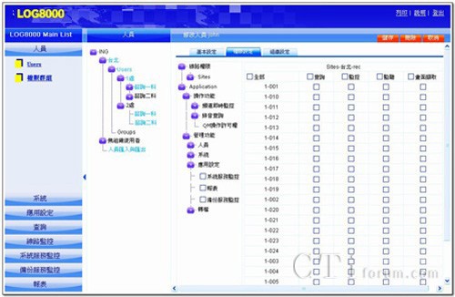 權(quán)限管理設(shè)計(jì),采樹枝狀展開(kāi)圖之設(shè)計(jì)模式,讓系統(tǒng)管理者可以輕易地掌握目前建立組織(各個(gè)據(jù)點(diǎn))、人員(為值機(jī)員、督導(dǎo)、評(píng)分員或管理者)與不同群組之狀態(tài),設(shè)定多層級(jí)的權(quán)限密碼,增加維護(hù)便利性。