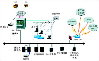 本項目采用新太科技交互式電話會議系統(tǒng)2.0版,系統(tǒng)各組成部分見圖1。前端接入設(shè)備采用SUNTEK-IPS數(shù)字排隊機(jī),負(fù)責(zé)多方電話會議用戶和其他業(yè)務(wù)用戶接入的交換排隊、自動語音資源提供、座席服務(wù)資源提供、錄音、計費等等。SUNTEK-IPS數(shù)字排隊機(jī)是新太科技最新一代軟交換平臺,是整個系統(tǒng)平臺的核心。它綜合了新太科技?xì)v代平臺的優(yōu)勢,采用世界上最先進(jìn)的軟交換(包交換)技術(shù)和CompactPCI技術(shù),支持主控CPU卡冗余和熱拔插,擁有更大規(guī)模的交換系統(tǒng)總線(CompactPCI的CTBus總線共有4096個時隙,理論上,單個機(jī)框可以支持4k×4k的交換)。SUNTEK-IPS數(shù)字排隊機(jī)基于自主開發(fā),擁有自主產(chǎn)權(quán),保證了極高的性價比,已經(jīng)通過了信息產(chǎn)業(yè)部入網(wǎng)認(rèn)證。SUNTEK-IPS數(shù)字排隊機(jī)現(xiàn)已在十多個省成功開展全省業(yè)務(wù)的事實,證明了它具備技術(shù)先進(jìn)、可靠性強(qiáng)等特點。