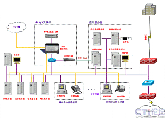 95190呼叫中心項目采用國際知名品牌AVAYA交換機(jī)作為系統(tǒng)接入處理,提供了包括數(shù)據(jù)庫服務(wù)器、文件服務(wù)器、CTI/IVR服務(wù)器、中間件服務(wù)器等相關(guān)后臺強有力的支撐服務(wù)設(shè)備,提供了三層網(wǎng)絡(luò)交換機(jī)、硬件防火墻等網(wǎng)絡(luò)設(shè)備等。整個系統(tǒng)達(dá)到960路中繼接入、180路人工座席、20路IP座席、360路IVR、15路傳真;支持7號信令、ISDN信令等信令協(xié)議;提供人工座席的實時同步錄音。