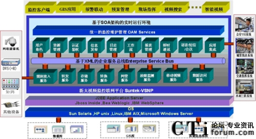 新太視頻監(jiān)控聯(lián)網(wǎng)管理平臺采用J2EE開放式架構(gòu),可以在WINDOWS/LINUX操作系統(tǒng)下運行,具有強大的伸縮性。