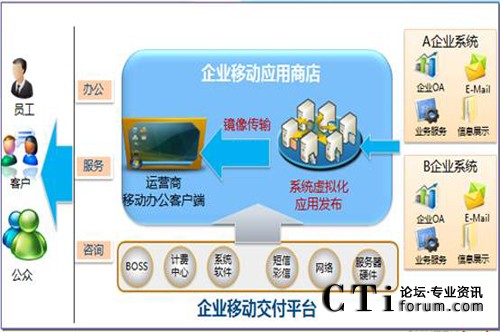 如果在政府或企業(yè)在內(nèi)網(wǎng)部署“移動(dòng)應(yīng)用交付平臺(tái)”,即可充分利用現(xiàn)有運(yùn)營(yíng)商網(wǎng)絡(luò)渠道服務(wù)的能力,從而實(shí)現(xiàn)政府或企業(yè)的“移動(dòng)辦公”要求。