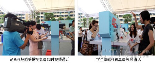 這次在廣州大學城開展的發(fā)布會,吸引了很多在校大學生的參加,下圖是記者和學生現(xiàn)場體驗通過悅視高清視頻通話玩即時猜拳游戲,傳輸?shù)乃挟嬅娣浅G逦鲿,悅視產(chǎn)品的優(yōu)質(zhì)體驗讓人享受無線高質(zhì)量流媒體服務的同時深刻感受到TD-LTE高帶寬、低時延的優(yōu)勢。