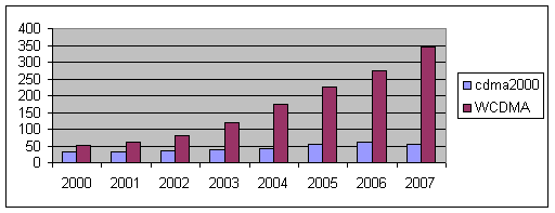 在2002年至2007年的預測期內,收入增長率將穩(wěn)定提高,從而將提高覆蓋率,用戶滲透率也會穩(wěn)定增長。2007年,由于WCDMA基礎設施的部署的增加,增長率將會有所提高。