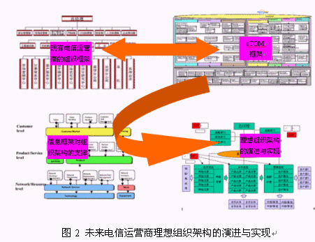 現有的電信運營商的管理架構向理想的管理組織架構演進過程中,要涉及到不同的中間過程和步驟,對中間過渡狀態(tài)的評估和有效實現,是實現演進的關鍵,F有組織架構管理職能的對應,業(yè)務流程的標準化,管理流程的標準化,企業(yè)IT支撐架構對業(yè)務職能部門的支撐,這些環(huán)節(jié)都是運營商應該重點考慮的中間內容。圖2顯示了未來電信運營商理想組織架構的演進與實現過程。其中的任何一個環(huán)節(jié)都是電信運營管理研究的核心課題,也直接影響到了電信運營管理變革的成敗。