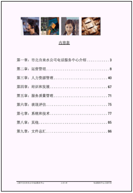 b) 現(xiàn)代客戶服務(wù)中心的管理框架已經(jīng)基本形成。我們?yōu)槭斜弊詠硭蛻舴⻊?wù)中心編輯了一套呼叫中心運(yùn)營管理手冊,其中分為經(jīng)理版和客戶服務(wù)代表版,其中包含了呼叫中心的規(guī)章制度,運(yùn)作流程,人力資源管理等內(nèi)容。