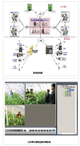 在應(yīng)用案例中,山東壽光蔬菜遠(yuǎn)程診斷系統(tǒng),是基于大唐電信無線EDGE/TD視頻系統(tǒng)平臺(tái)的遠(yuǎn)程農(nóng)業(yè)專家系統(tǒng)。應(yīng)用此系統(tǒng),可對大棚里的溫度、濕度進(jìn)行采集,并疊加到視頻圖像上,進(jìn)行上傳。農(nóng)業(yè)專家可通過視頻圖像判斷植株生長情況、檢查是否有病蟲害、大棚的溫濕度是否合適,并可以檢測土壤的酸堿度等信息,為農(nóng)戶提供相應(yīng)的指導(dǎo),獲得了良好的社會(huì)效益和經(jīng)濟(jì)效益。