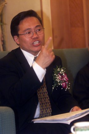 CTI論壇斑竹雙子星(趙棟偉)正為現(xiàn)場幸運(yùn)觀眾頒獎(jiǎng)