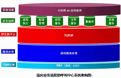 面向業(yè)務(wù)流程的呼叫中心基礎(chǔ)平臺(tái)采用水平式系統(tǒng)架構(gòu),此種架構(gòu)方式屏蔽了底層功能(如交換、媒體處理)的技術(shù)實(shí)現(xiàn),通過業(yè)務(wù)抽象為業(yè)務(wù)流程提供功能部件的組合,相對于傳統(tǒng)的垂直分散的結(jié)構(gòu)而言,用戶只關(guān)注業(yè)務(wù)流程,無需關(guān)心底層的技術(shù)實(shí)現(xiàn)。