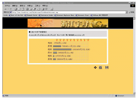 宇峰公司(www.fromforty.com)是柯達(中國)有限公司在中國華東地區(qū)的總代理,負責管理華東地區(qū)近600個分銷商和連鎖店。公司非常重視信息化建設(shè),添設(shè)了大量的計算機,建立起初步的管理系統(tǒng)。但是直到2000年還是依靠E-mail傳遞大量的Excel表格獲取需要的產(chǎn)品銷售和庫存的信息。這些表格對各級分銷商查詢和統(tǒng)計數(shù)據(jù)來說非常麻煩,因為每周要處理幾百個訂購單。整個處理過程非常緩慢,并且成本很高,也容易造成各種的數(shù)據(jù)錯誤。而公司內(nèi)部對業(yè)務人員銷售情況的統(tǒng)計,也頗為麻煩,因為下級分銷商上報上來的數(shù)據(jù)準確性差,并且不夠及時。處理這些表格對宇峰公司和分銷商以及連鎖店而言都是效率很低的,并且常常令人茫然不知所措。