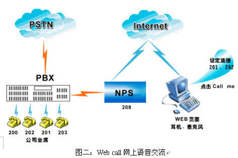 “無聲”一直是企業(yè)電子商務(wù)的最大遺憾,因?yàn)椤盁o聲”,許多消費(fèi)者卻步了。怎樣把語音和Web在網(wǎng)絡(luò)上結(jié)合起來?這正是星際網(wǎng)絡(luò)推出的web call系統(tǒng)(如圖二所示)的目標(biāo)。消費(fèi)者點(diǎn)擊點(diǎn)擊呼叫按鈕,就可以通過麥克風(fēng)與客服代表通話。并且網(wǎng)上來電與普通來電一樣,經(jīng)過交換及排隊(duì)處理,同樣支持來電資料彈出。對(duì)客戶來說,只需要一臺(tái)接入Internet的多媒體電腦和免費(fèi)的客戶端軟件就可實(shí)現(xiàn)Web瀏覽和交談功能。這個(gè)功能不僅可以讓客戶獲得更好的售后服務(wù),在售前服務(wù)中也可以發(fā)揮巨大效用。家電產(chǎn)品的特性使得消費(fèi)者在購(gòu)買之前必須對(duì)產(chǎn)品有充分了解,在網(wǎng)站瀏覽中通過與客戶代表的交流增進(jìn)產(chǎn)品了解,刺激其購(gòu)買欲望。讓家電行業(yè)的網(wǎng)上商務(wù)的更有效。