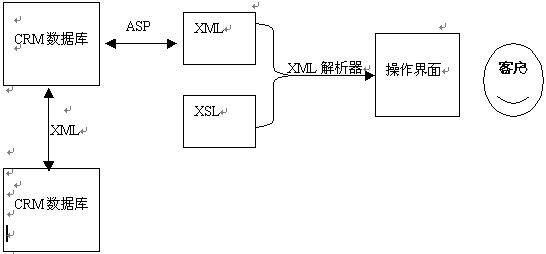包括客戶資料,銷售報(bào)表等相關(guān)的客服信息都存儲(chǔ)在數(shù)據(jù)庫(kù)中,通過(guò)ASP應(yīng)用程序取出需要的數(shù)據(jù)生成符合條件的XML文檔,再通過(guò)安裝在服務(wù)器端的XML解析器按照預(yù)先設(shè)定的排版樣式XSL解析XML文檔,最后生成符合條件的HTML格式的CRM操作界面呈現(xiàn)在客戶面前?蛻魯(shù)據(jù)可能來(lái)自不同的數(shù)據(jù)庫(kù),并且都有各自不同的復(fù)雜格式。但客戶與這些數(shù)據(jù)庫(kù)間只通過(guò)一種標(biāo)準(zhǔn)語(yǔ)言進(jìn)行交互,那就是XML。由于XML的自定義性及可擴(kuò)展性,它足以表達(dá)各種類型的數(shù)據(jù)?蛻羰盏綌(shù)據(jù)后可以進(jìn)行處理,也可以在不同數(shù)據(jù)庫(kù)間進(jìn)行傳遞。