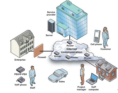企業(yè)網(wǎng)絡融合是在互聯(lián)網(wǎng), 固定網(wǎng), 移動網(wǎng)三網(wǎng)合一的基礎上, 由企業(yè)服務提供商提供的可以控制和管理的融合通信平臺, 將語音、視頻、圖片、文件傳送等功能統(tǒng)一實現(xiàn)。企業(yè)員工可在不同地點, 通過不同終端接入此平臺,內(nèi)部語音通信可以直接通過企業(yè)內(nèi)部IP網(wǎng)絡進行,國內(nèi)外分支機構間語音通信,只需要支付IP網(wǎng)絡接入的費用,不但提供了靈活高效的通信手段, 也節(jié)省了原本高額的通信費用。