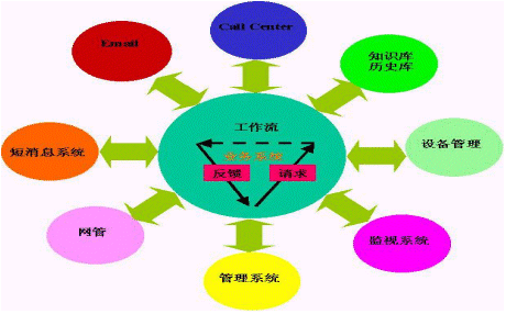 工行北方數(shù)據(jù)中心HelpDesk系統(tǒng)與工行北方數(shù)據(jù)中心的設(shè)備管理系統(tǒng)、網(wǎng)管系統(tǒng)和監(jiān)視系統(tǒng)整合,使HelpDesk系統(tǒng)能夠為技術(shù)支持人員提供更多的信息。通過與網(wǎng)管集成,可以利用HelpDesk系統(tǒng)發(fā)布網(wǎng)管采集的異常信息,同時這些信息可以為技術(shù)支持人員的工作提供參考。設(shè)備管理信息不但可以供技術(shù)支持人員參考,還可以使當前的工作與設(shè)備相關(guān)。這樣便于監(jiān)督、審查,同時也使設(shè)備維護的歷史信息可以供日后參考。監(jiān)視系統(tǒng)提供報警和大屏幕顯示。大屏幕顯示系統(tǒng)可以把取自系統(tǒng)內(nèi)的關(guān)鍵數(shù)據(jù)顯示到幕墻上。