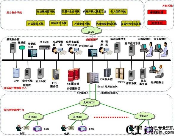 中國(guó)郵政儲(chǔ)蓄銀行電話(huà)銀行暨信用卡客服中心系統(tǒng)的物理結(jié)構(gòu)如下圖所示: