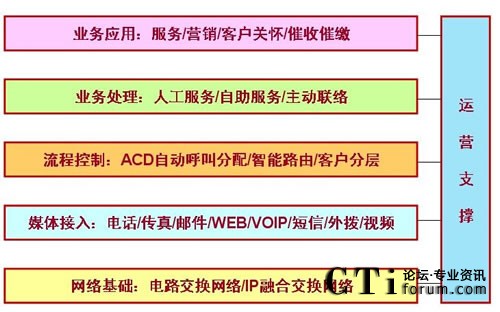多媒體接入方式,應(yīng)對(duì)以混合業(yè)務(wù)處理的高效座席處理,才是現(xiàn)代化、高效率的聯(lián)絡(luò)中心業(yè)務(wù)模式。而聯(lián)絡(luò)中心后臺(tái)的業(yè)務(wù)處理卻是統(tǒng)一的,其構(gòu)架層次分明,如下圖示: