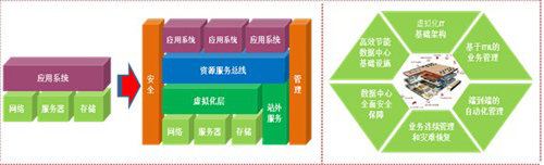 企業(yè)的發(fā)展和業(yè)務(wù)的創(chuàng)新越來越離不開IT技術(shù)的應(yīng)用,傳統(tǒng)的以項(xiàng)目為建設(shè)單元的數(shù)據(jù)中心造成了煙囪式的建設(shè)、分布式的開發(fā)、分離式的運(yùn)維,使眾多企業(yè)的 IT 形成了復(fù)雜的、孤立的架構(gòu),信息孤島隨處可見,無法提供靈活、安全和易于擴(kuò)展的應(yīng)用環(huán)境,從多方面影響了業(yè)務(wù)運(yùn)營(yíng)的效果。隨著商業(yè)模式的不斷創(chuàng)新、IT技術(shù)的不斷發(fā)展,業(yè)務(wù)與IT日益密切,傳統(tǒng)的數(shù)據(jù)中心建設(shè)已經(jīng)無法滿足未來業(yè)務(wù)發(fā)展的需要,難于部署新的應(yīng)用與服務(wù),設(shè)備利用率低下,業(yè)務(wù)彈性較難,無法保證系統(tǒng)和應(yīng)用的可用性和可靠性,同時(shí)不斷上升的能源成本和能源需求、機(jī)房空間需求阻礙了業(yè)務(wù)的發(fā)展。