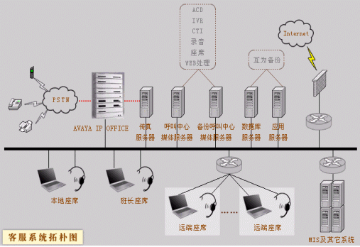 利用AVAYA IP OFFICE和Intel的HMP配合構(gòu)建的呼叫中心,是新一代小型呼叫中心的范例。利用IP OFFIC的高穩(wěn)定性和分布能力,HMP提供的基于IP媒體的豐富性實(shí)現(xiàn)了方案要求的高度融合性分布式和可擴(kuò)展性要求。
