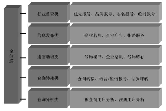 面向個(gè)人用戶提供簽約企業(yè)的話務(wù)轉(zhuǎn)接和報(bào)號(hào)業(yè)務(wù)。提高企業(yè)服務(wù)的質(zhì)量,縮短企業(yè)間的距離。包括以下三類子業(yè)務(wù):查詢轉(zhuǎn)接、短信/傳真報(bào)號(hào)、話務(wù)呼轉(zhuǎn)。
