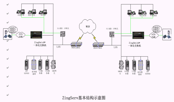 硬件:各點都有ZingSwitch®,S口網(wǎng)關和CO8卡或E1 接口網(wǎng)關和E1卡。