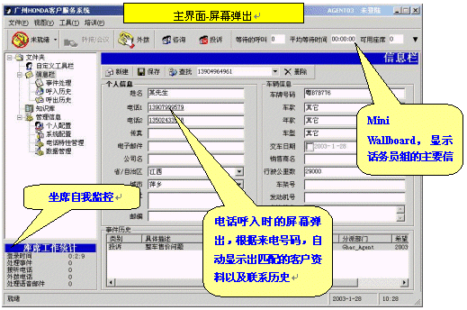 當客戶的電話被轉到客戶服務人員時,客戶的所有相關信息將自動彈出顯示在服務人員的電腦屏幕上,包括歷史接觸記錄信息等,這樣就能提供最具有針對性和高效率的服務。如果是新客戶,那么服務人員將即時錄入信息,動態(tài)擴充數據庫。