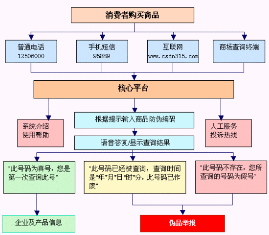 在國(guó)家計(jì)委和國(guó)務(wù)院信息辦的直接領(lǐng)導(dǎo)下,以及在質(zhì)檢、工商、醫(yī)藥等職能部門(mén)的配合下,國(guó)家信息中心正式啟動(dòng)國(guó)家級(jí)防偽工程 -- 數(shù)碼防偽公共服務(wù)系統(tǒng)建設(shè)。該系統(tǒng)綜合利用了當(dāng)前最先進(jìn)的技術(shù),集CTI技術(shù)、語(yǔ)音技術(shù)、網(wǎng)絡(luò)通信技術(shù)、計(jì)算機(jī)加密技術(shù)、以及大型數(shù)據(jù)庫(kù)技術(shù)于一體,服務(wù)于產(chǎn)品防偽和打假,支持企業(yè)采用現(xiàn)代信息技術(shù)開(kāi)展防偽工作,提高防偽效能,并為廣大消費(fèi)者提供安全和質(zhì)量的保障。