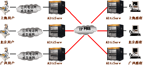 奧迪堅(jiān)分布式呼叫中心圖 (多對(duì)多) :