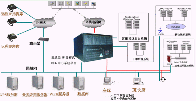 - 該物流呼叫中心系統(tǒng)基于奧迪堅IP的分布式呼叫中心技術(shù),可以實現(xiàn)公司業(yè)務(wù)、物流中心、倉庫、銷售代表、售后服務(wù)等部門通過VoIP方式的有機結(jié)合,節(jié)省企業(yè)的運營成本,也可以拓展企業(yè)銷售與服務(wù)的外延;