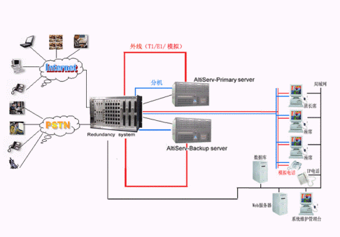 奧迪堅全球領(lǐng)先的CTI平臺的供應商和IP分布式呼叫中心的領(lǐng)導者,在技術(shù)上不斷創(chuàng)新,對產(chǎn)品精益求精,尤其體現(xiàn)在對系統(tǒng)的運行安全性的要求上,為了防止電信接入設備或者企業(yè)網(wǎng)絡出現(xiàn)故障而造成的呼叫中心服務中斷,奧迪堅呼叫中心系統(tǒng)提供安全保護冗余切換系統(tǒng),來保障呼叫中心在意外情況下的正常工作,該安全冗余切換系統(tǒng)通過對電源、T1/E1、模擬trunk、分機座席、以及各種網(wǎng)絡鏈路串口等備份切換來實現(xiàn)可靠的運行。除此之外,奧迪堅系統(tǒng)本身也提供強大的安全保障,由于采用先進IP內(nèi)核一體化設計,集傳統(tǒng)PBX、CTI服務器、IVR、ACD、Recording、FAX等眾多設備于一體,這樣有效的避免了因為外掛設備過多以及設備供應商的不同而存在的兼容性的問題,從而降低了給呼叫中心系統(tǒng)帶來的的不穩(wěn)定的安全隱患。在系統(tǒng)之外依靠安全保護冗余切換系統(tǒng),可以實現(xiàn)外線、分機、以及各種鏈路接口的雙倍安全運行。當啟用了冗余功能,并且已經(jīng)激活了主服務器,系統(tǒng)會將所有的許可協(xié)議,配置,語音信箱文件以及客戶短語等復制到次服務器上。