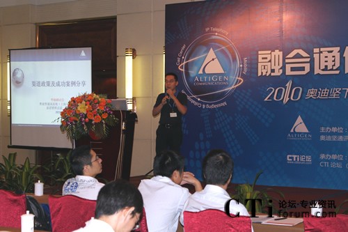 CTI論壇(ctiforum)9月10日消息(記者 楊毅):2010年9月9日奧迪堅在廣州市嘉鴻華美達廣場酒店舉辦的“下一代融合通信平臺華南研討會” 圓滿落下帷幕。本次會議以 “融合通信” 為主題,將最新的由“IPT、IPCC、UC和Mobility”四個部分組成的融合通信技術(shù)完美呈現(xiàn)在嘉賓眼前,吸引了業(yè)界眾多知名廠商和媒體,并得到了奧迪堅在各個行業(yè)的新老客戶的積極響應(yīng)和參與。通過奧迪堅的精彩主題演講、現(xiàn)場的情景秀表演和眾多案例分享等多種形式,與合作伙伴及嘉賓共同探討融合通信技術(shù)該如何發(fā)展、解讀渠道新政策、同時更加深入了解奧迪堅產(chǎn)品,提高合作伙伴在市場上的競爭力。CTI論壇(m.kpskgd.com)獨家承辦此次會議,并進行全程報道。