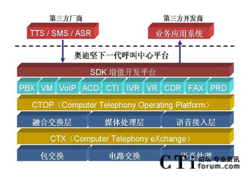 傳統(tǒng)型的語(yǔ)音交換機(jī)在設(shè)計(jì)之初,只側(cè)重于語(yǔ)音交換能力,并沒有考慮到呼 叫中心這種需要集成數(shù)據(jù)的應(yīng)用模式,因此基于傳統(tǒng) TDM 交換機(jī)的呼叫中心系 統(tǒng)都需要外掛 CTI 服務(wù)器,至于基于語(yǔ)音板卡、傳統(tǒng)型 IP-PBX 或軟交換的呼叫 中心系統(tǒng)也不例外。而奧迪堅(jiān) IP 呼叫中心平臺(tái)在設(shè)計(jì)伊始,就專門針對(duì)于呼叫 中心的應(yīng)用,在底層已經(jīng)將 PBX、CTI、IVR 等核心功能緊密地融合在一起了, 在系統(tǒng)集成度方面遠(yuǎn)遠(yuǎn)優(yōu)于傳統(tǒng) TDM 交換機(jī)、語(yǔ)音板卡、傳統(tǒng)型 IP-PBX 或軟 交換的解決方案。