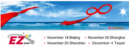翹首以盼的億迅用戶大會—EZ Infinity 2008即將在近期為大家揭開神秘面紗。在今年,億迅完成了一次新的蛻變,即從G-force合作伙伴的身份成熟轉(zhuǎn)型成為EZ Infinity的主辦方,從2008年11月18日起至12月4日, EZ Infinity將在北京,上海,深圳和臺北相繼舉辦,為大家?guī)硪粓鰣鲂迈r出爐的精辟演講和豐富多彩的專題討論活動。