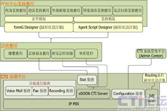 為了回應中小型呼叫中心對“小投資”、“大回報”的期盼,eSOON推出了針對中小型呼叫中心的特點并完整發(fā)揮IP優(yōu)勢的呼叫中心一體化解決方案(All-In-One) EZ-IPCC,它不僅包含了所有呼叫中心所需要的系統(tǒng)功能,如IPPBX、IVR、CTI、 FAX、錄音以及坐席端的業(yè)務系統(tǒng)和管理者所必須的監(jiān)控及報表等功能,并且免除了繁鎖的集成工作,讓企業(yè)在輕松建置呼叫中心的同時,也保證了系統(tǒng)的穩(wěn)定性與可靠性。