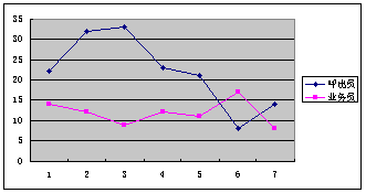 第五:考核指標及獎勵機制的建立:呼出人員必須有相應(yīng)的考核辦法及獎勵機制,這從表1我們可以清楚地看到,呼出員的業(yè)績還不是很穩(wěn)定,有下降趨勢,而且幅度較大,這是由于在試運行期間沒有建立相應(yīng)的考核指標及獎勵機制造成的,而有相應(yīng)機制的業(yè)務(wù)員的業(yè)績相對要穩(wěn)定得多。當(dāng)然富爾已經(jīng)意識到這個問題了,并采取了相應(yīng)的措施,目前2個呼出人員每人每天均穩(wěn)定在1萬元左右,說明采取的措施得力。