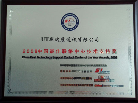 UT斯達(dá)康獲"2008中國最佳聯(lián)絡(luò)中心技術(shù)支持獎"