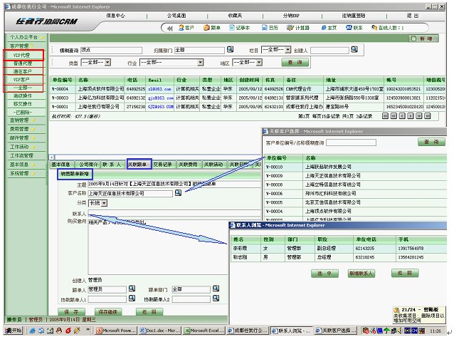 同一個客戶可以有幾個跟單在同時進行。以某客戶為入口,新建跟單,就自動建立一個索引,同時在"直銷管理"里面自動添加了一張銷售跟單。同時建立跟單者可以指定協(xié)同跟單人。