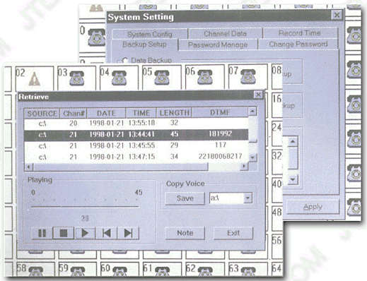 每個(gè)電話通道都有自動(dòng)增益(AGC)功能,可解決長途電話、國際電話、或偏遠(yuǎn)地區(qū)電話信號(hào)不良等問題。采用數(shù)字化錄音有效避免了傳統(tǒng)磁帶式錄音易失真、難保存的缺點(diǎn)。先進(jìn)的錄音系統(tǒng)設(shè)計(jì),使通話雙方覺察不到正在錄音或監(jiān)聽。 錄音文件為.VOC格式,同時(shí)也可隨意的向前、向后的移動(dòng)。 |