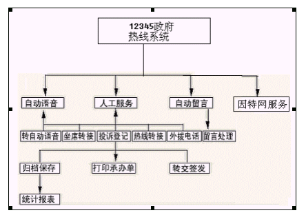 市民利用電話撥打某一特服號碼(如12345)進入政府熱線系統(tǒng),12345政府熱線系統(tǒng)依托地方政府各類業(yè)務技術(shù)支持系統(tǒng)和網(wǎng)絡系統(tǒng),通過人工受理或自動語音服務等方式全天24小時不間斷地為人民群眾提供各種服務;形成了對外服務于百姓的無形窗口,對內(nèi)管理、分析、決策系統(tǒng)相結(jié)合的呼叫中心。